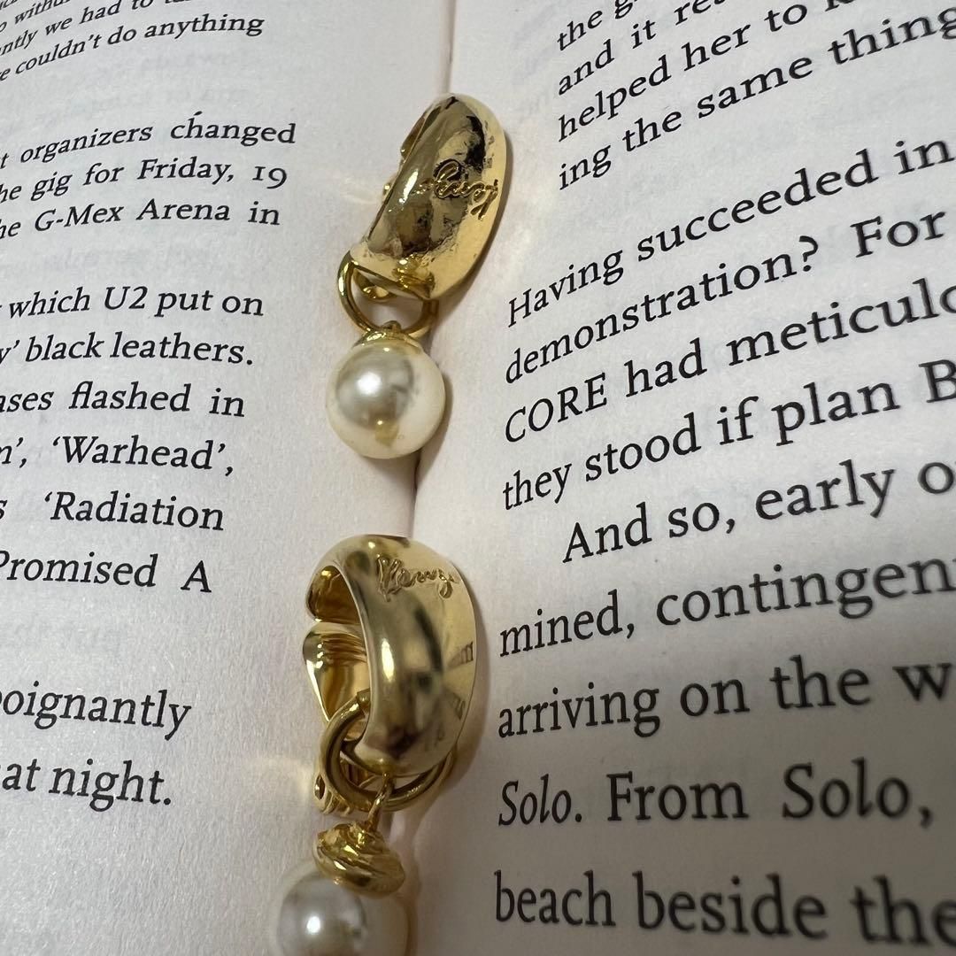 - デザイン: ゴールドトーンのフープピアスにパールのチャーム付き