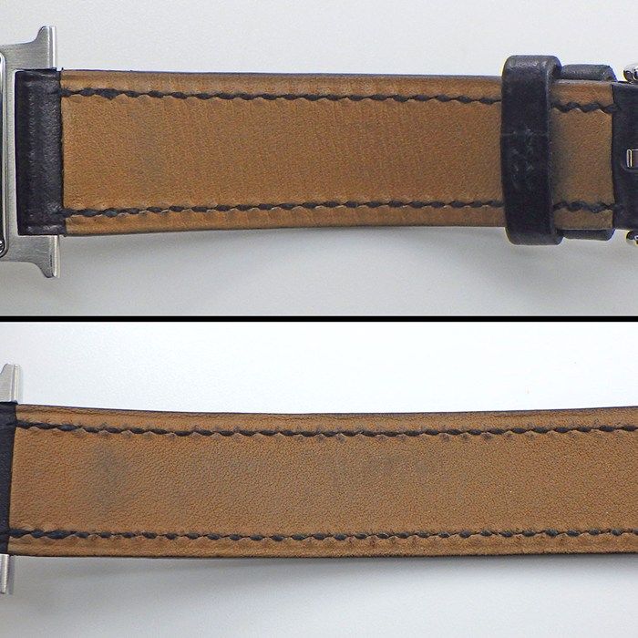 エルメス HERMES 腕時計 Hウォッチ ドゥブルトゥール HH 1.210 スクエア シルバー ヴァーグ ギョーシェ文字盤 SS ブラック レザーベルト クオーツアナログ
