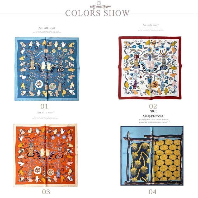 シルクスカーフ シルク100% 正方形 オフィススカーフ ネッカチーフ 絹 プリント 53 cm×53 cm ネックスカーフ 小さい 馬 紫外線防止 ギフト きれい色 夏 大人 猫 花柄 cjfj 144935