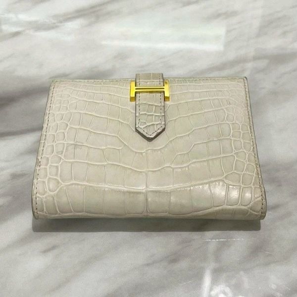 Z刻印 エルメス ベアンコンパクト アリゲーターマット べトン 折り財布