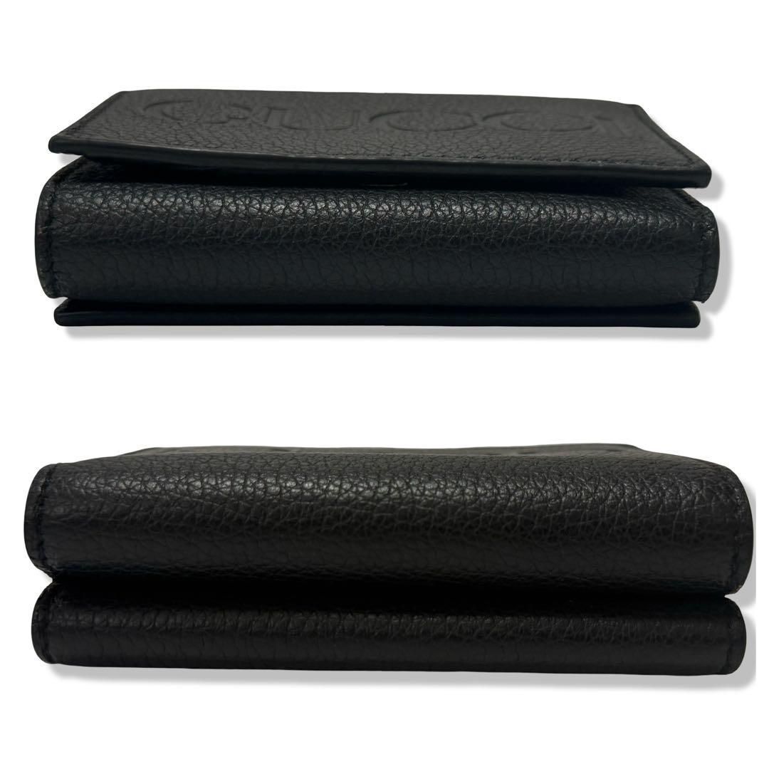 GUCCI グッチ ロゴエンボス コンパクト ウォレット 三つ折り財布 黒