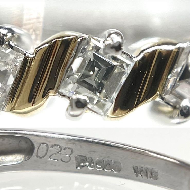 ダイヤ リング Pt 900 K 18 コンビ バゲットカットダイヤモンド 指輪