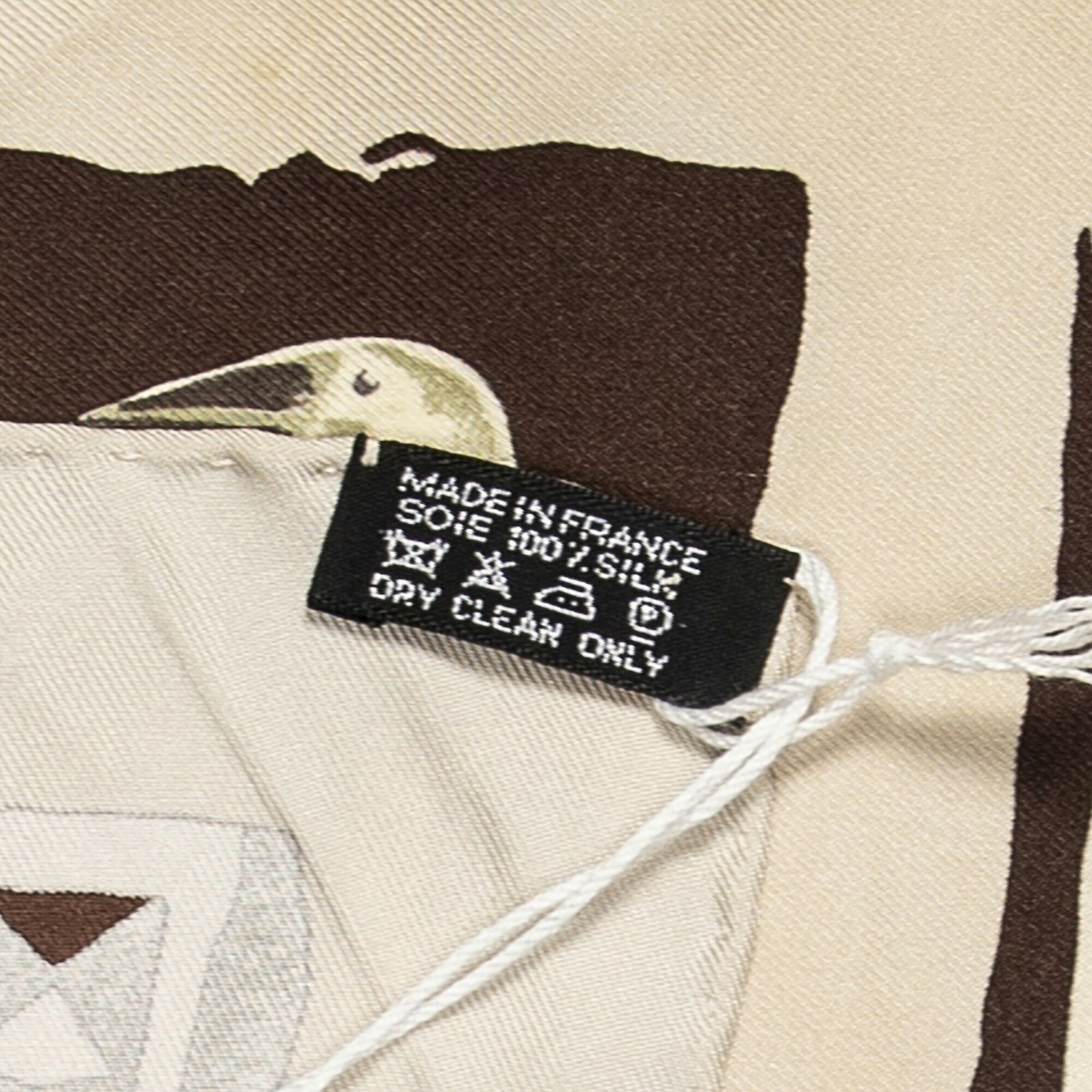 HERMES エルメススカーフ茶色 アイボリー ツイルシルクA