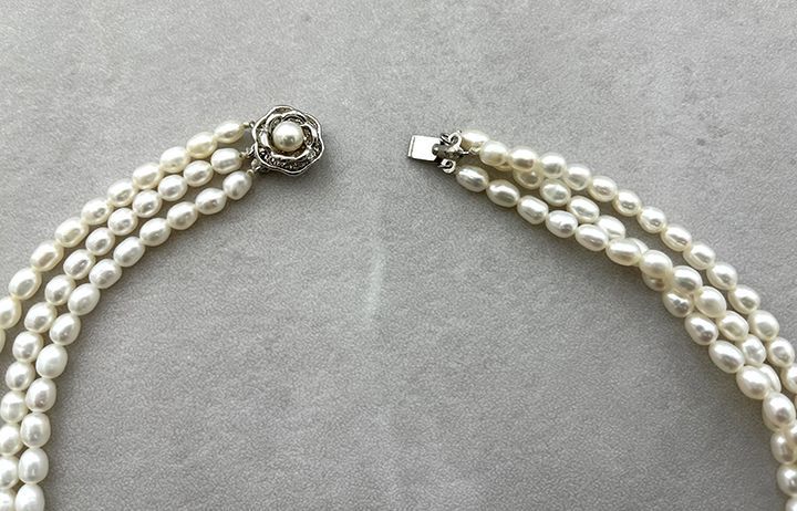 当店で買い付けていた淡水パールの3連チョーカーネックレスです。
