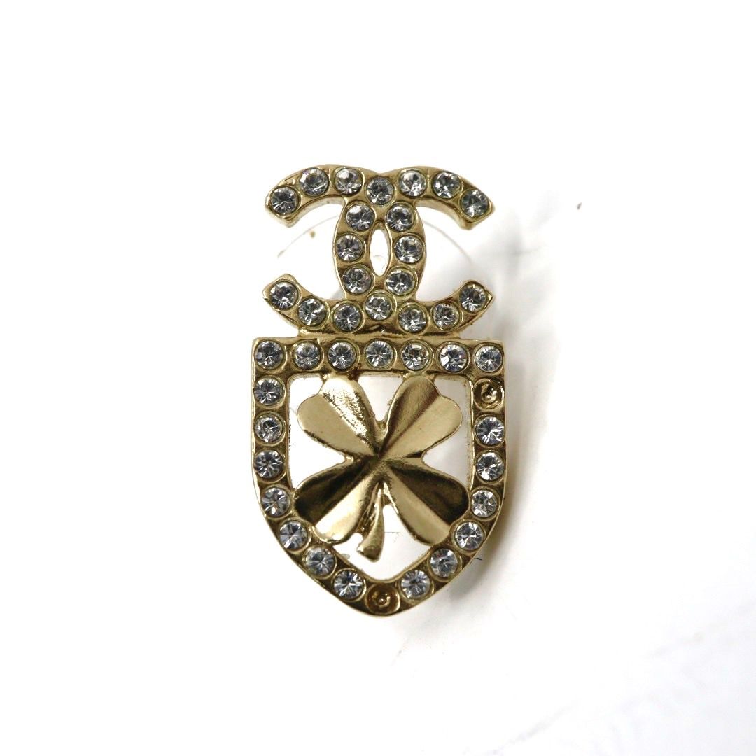 シャネル CHANEL ヴィンテージ ピアス ココマーク クローバー モチーフ ラインストーン ゴールド I 6
