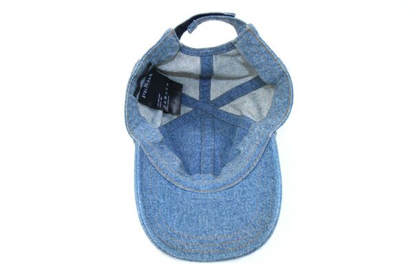 プラダキャップ2HC274ブルーコットンXLサイズ新品帽子デニムトライアングルロゴダメージ加工PRADA