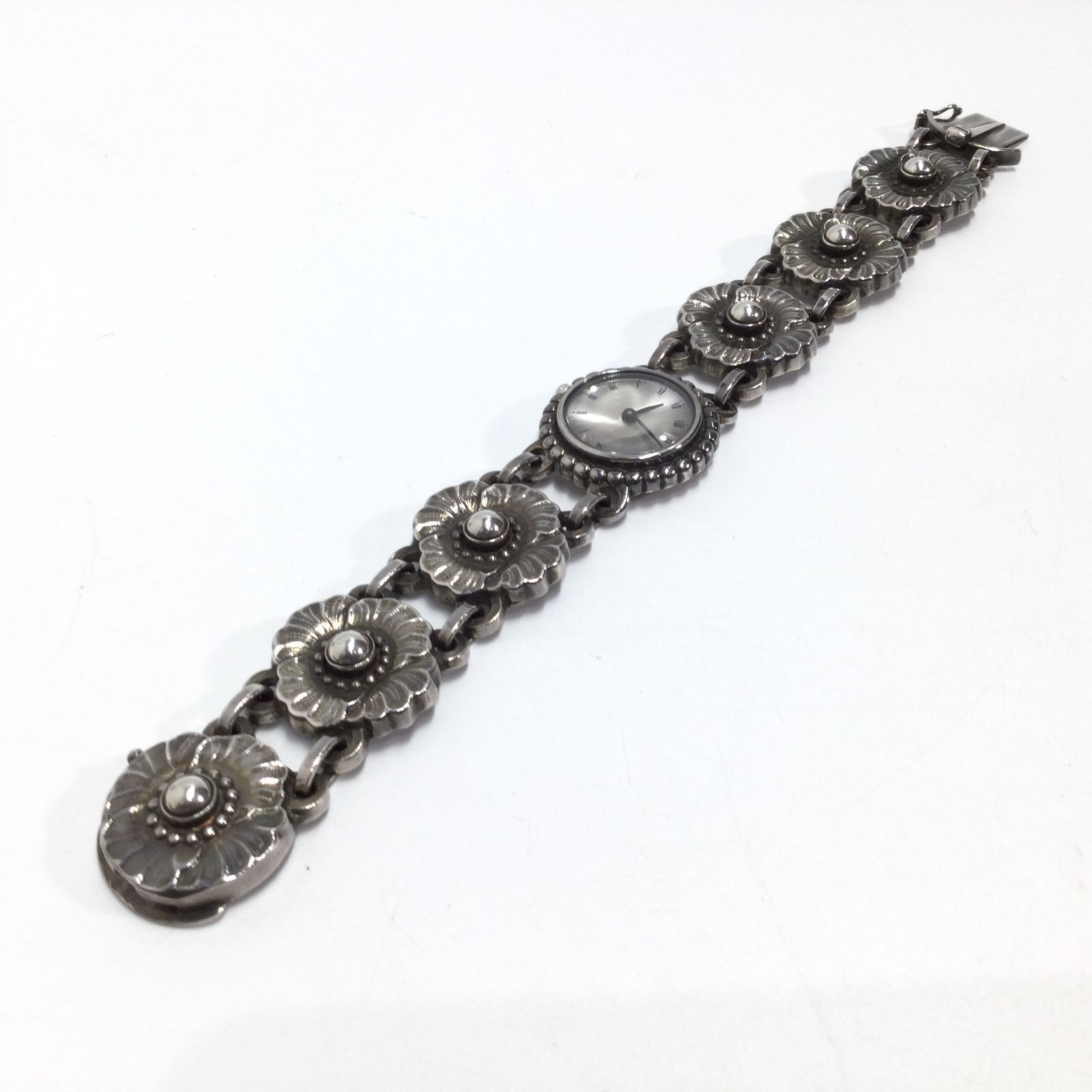 GEORG JENSEN 2366 フラワーモチーフ ブレスレット ウォッチ デンマーク製 シルバー925