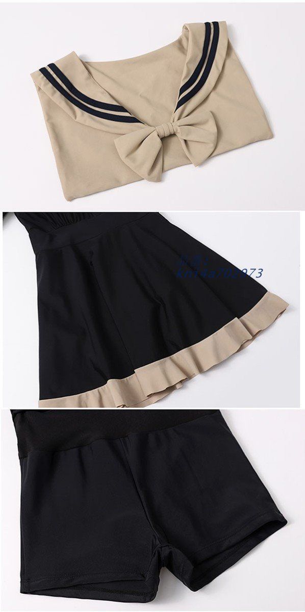 ワンピース水着 レディース マリン風 セーラーかわいい フリル リボン 撮影 ビーチ 水着 学生水着 着 せ プール ブラック 温泉 kni 4 a 702973