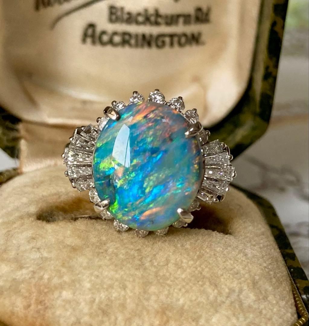 pm 900 天然ブラックオパール 3.38 ct × ダイヤモンド0.68 リング 指輪 昭和レトロ|ソーティング付き