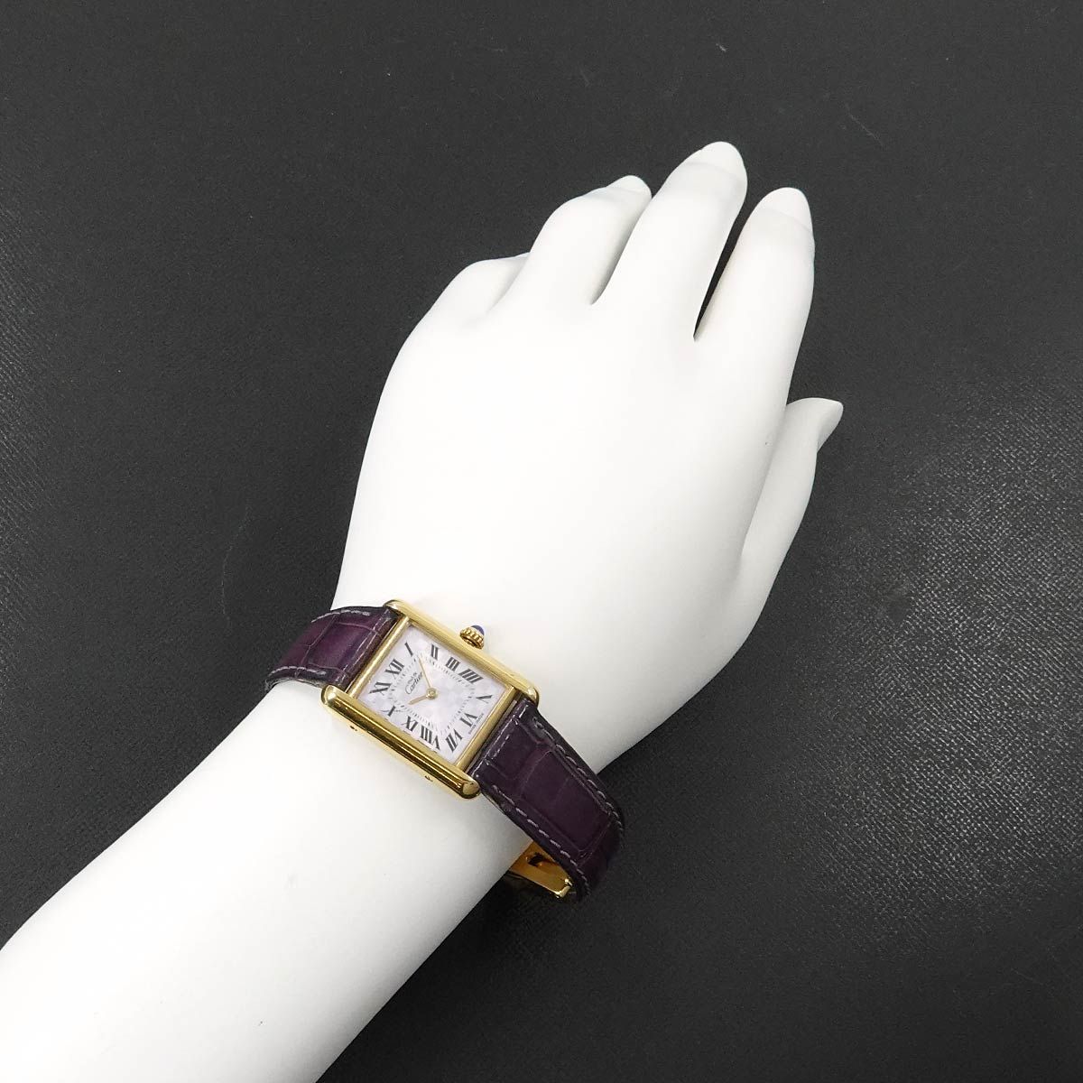 カルティエ Cartier マストタンクSM ヴェルメイユ ヴィンテージ レディース 腕時計 パープル SV 925 クォーツ Must Tank