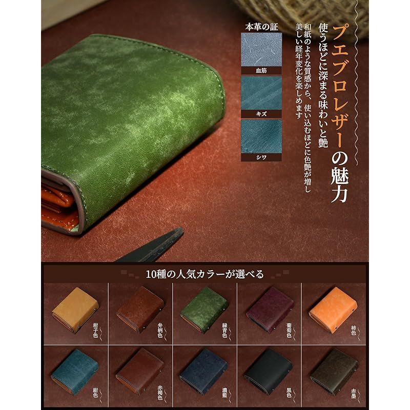 【商品仕様】 コンパクトなデザイン財布。サイズ:縦10.5cm × 横8cm × 厚さ3.5cm。*製造工程や測定方法により、0.5~1cm程度の誤差が生じる可能性があります。重さ:約92g。素材:表面は高級プエブロレザー、内部は柔らかな牛革を使用。?? ギフトにも最適:高級感あふれるギフトボックス付き。自分用にはもちろん、大切な方へのプレゼントにもおすすめです。