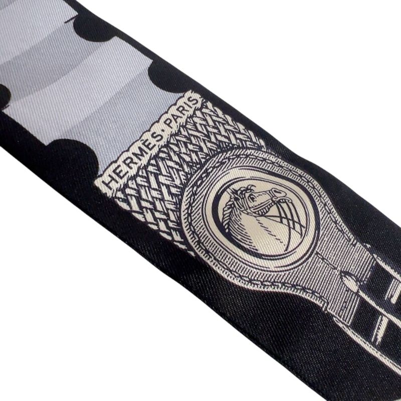 エルメス HERMES ツイリー ブリッド ア ブロック 詩的な目録 10 黒 グレー クレーム シルク レディース スカーフ