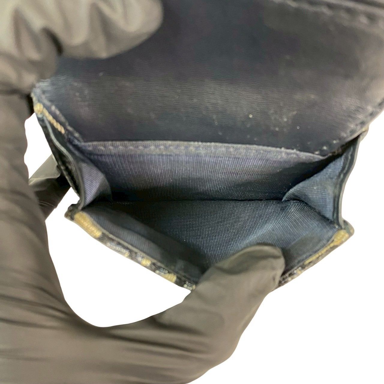 箱 袋付き Christian Dior ディオール トロッター 柄 キャンバス レザー 本革 三つ折り財布 ミニ ウォレット ネイビー 25171