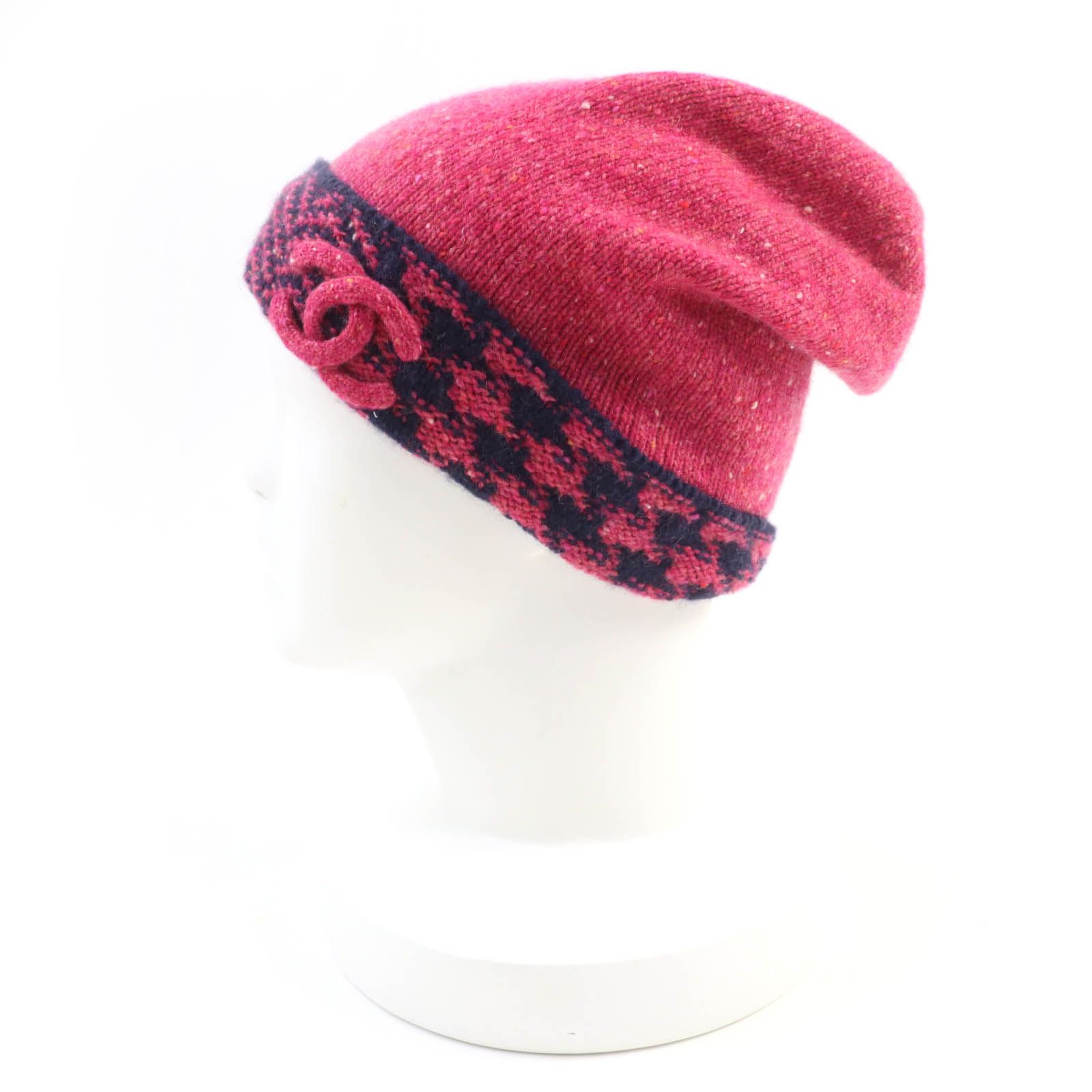 CHANEL シャネル 22 K カシミヤ100% ココマーク 千鳥格子柄 ニットキャップ ニット帽子 ピンク ネイビー レディース