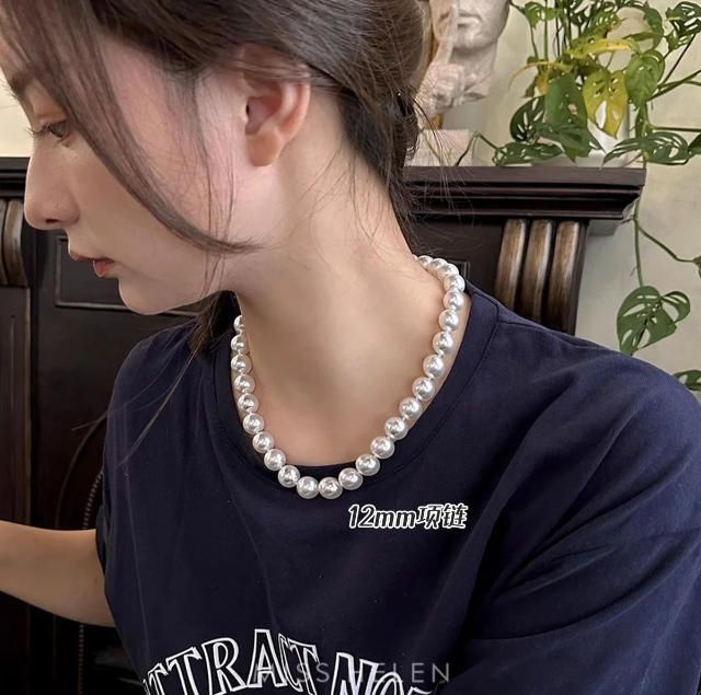 輸入冷光澳母貝澳白人造真珠ネックレス女性小衆の気質百合鎖骨鎖首鎖二点セット