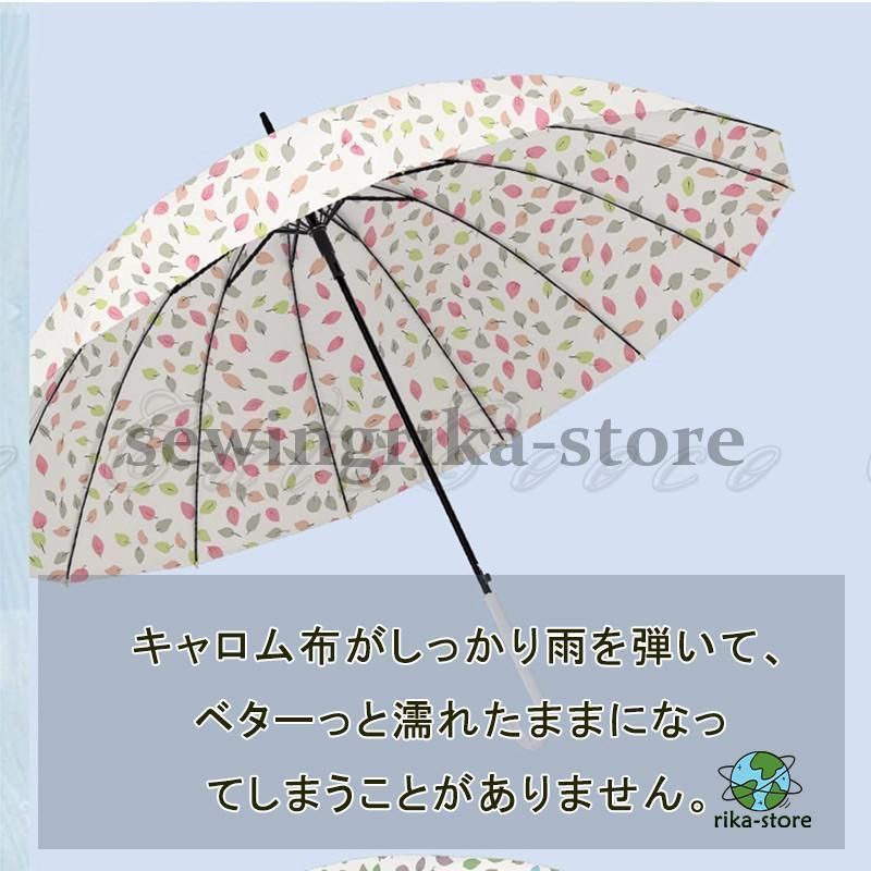 長傘 16本骨 傘 かさ 雨傘 おしゃれ 花柄 かわいい 耐風 撥水 丈夫 頑丈 ジャンプ ギフト プレゼント デザイン 完全遮光 UVカット 手