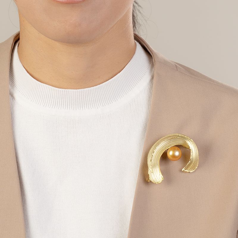 流れるようなラインが印象的なデザインに、存在感あふれる13.7mmの白蝶ゴールデンパールをあしらったブローチです。