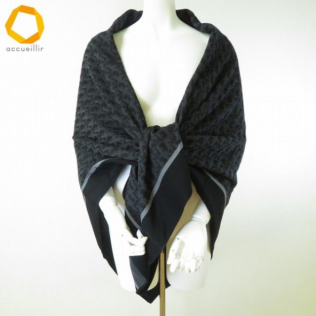 wxe クリスチャンディオール ChristianDior ストール ショール 大判 黒 グレー 総柄 トロッター ヴィンテージ レディース 957307 k 01