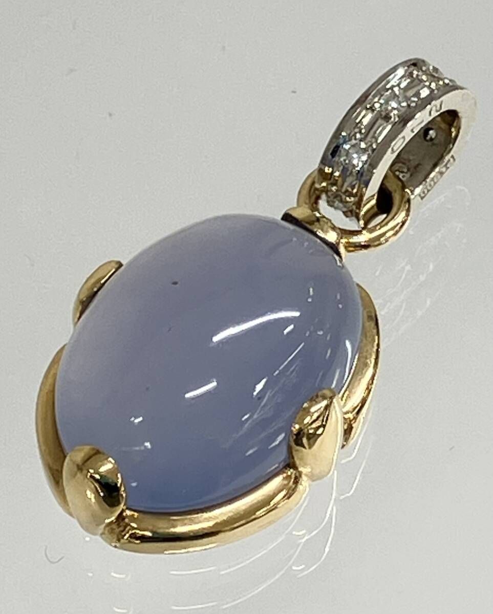K 18 Pt 900 天然ブルーカルセドニー めのう 天然ダイヤモンド 0.12 ct トップ