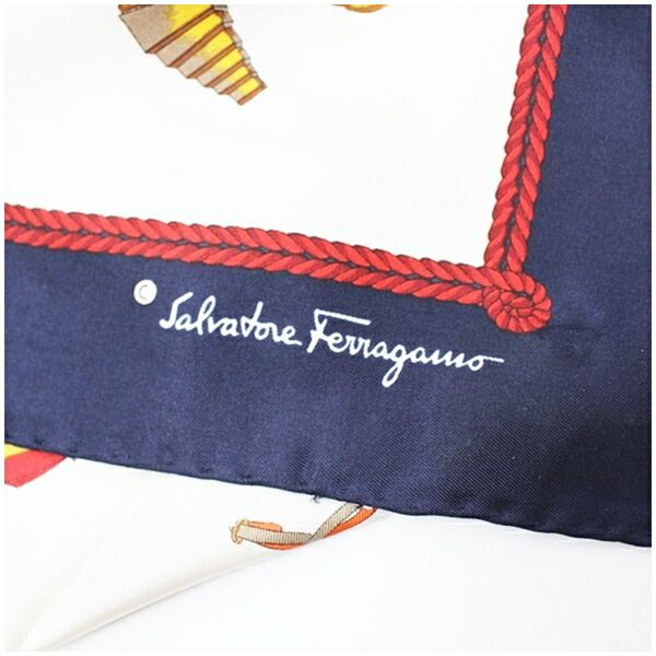 サルバトーレフェラガモ シルク スカーフ ホワイト ネイビー パンプス柄
