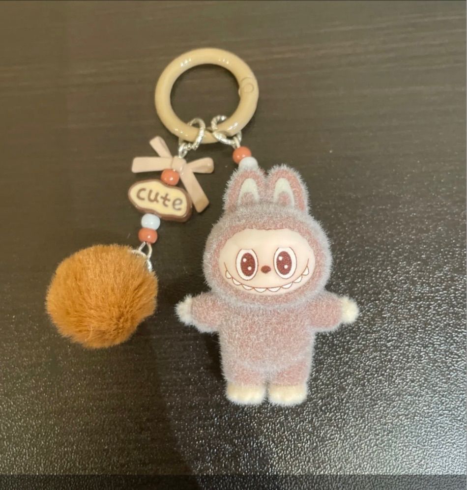 全 ラブブ Labubu キーホルダー ミニ ポンポンリボン付き