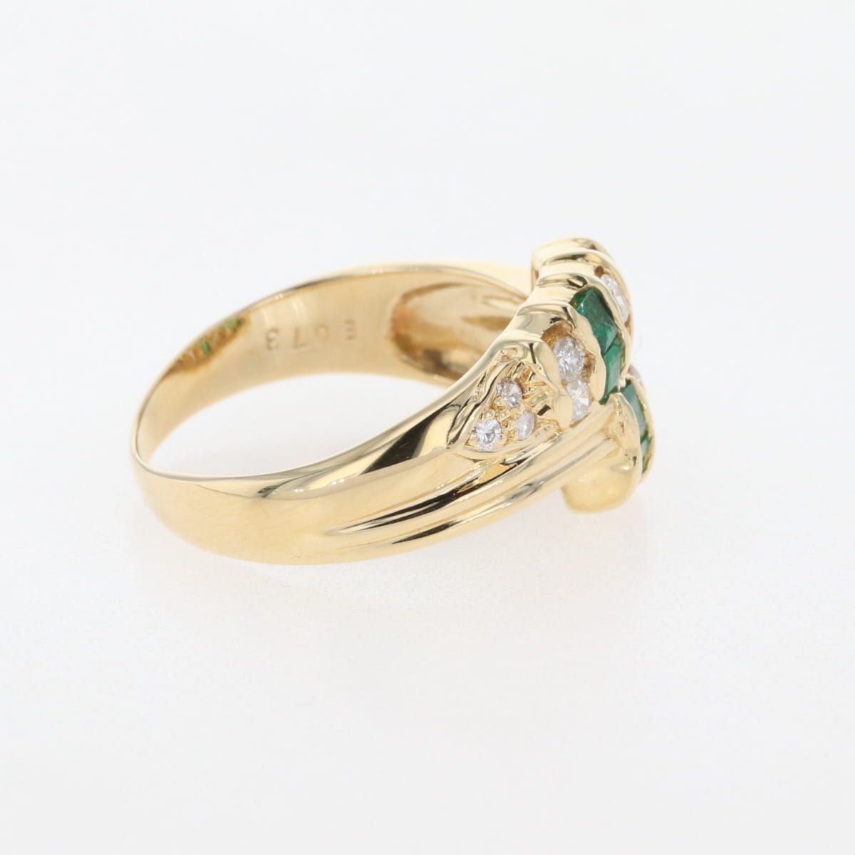 エメラルド デザインリング YG イエローゴールド 指輪 リング 13.5号 K 18 ダイヤモンド レディース