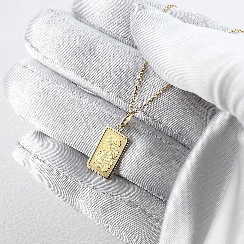 資産価値の高い24金の純金インゴットに、18金の枠とバチカンをあしらった高級感あふれるペンダント。