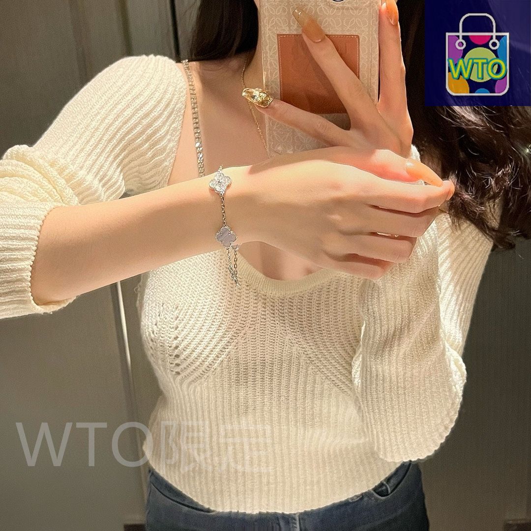 Van Cleef - Arpels ヴァンクリーフ&アーペル 四つ葉のクローバー カルセドニー スペーサー ダイヤモンド ファイブフラワー ブレスレット-WTO輸入1
