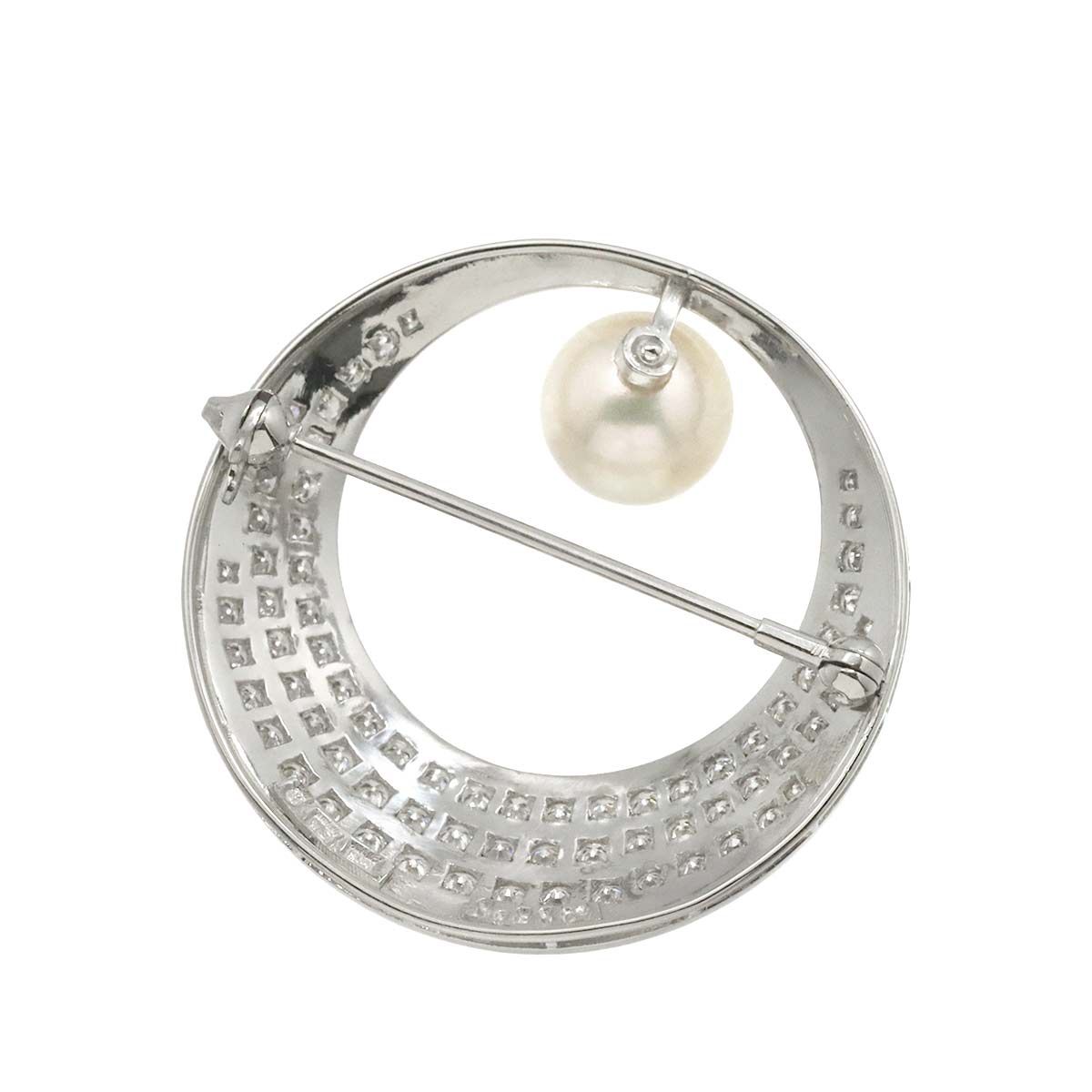 ミキモト アコヤ真珠 9.1 mm ダイヤ 1.31 ct ブローチ K 14 WG ホワイトゴールド 585 パール Akoya Pearl Brooch