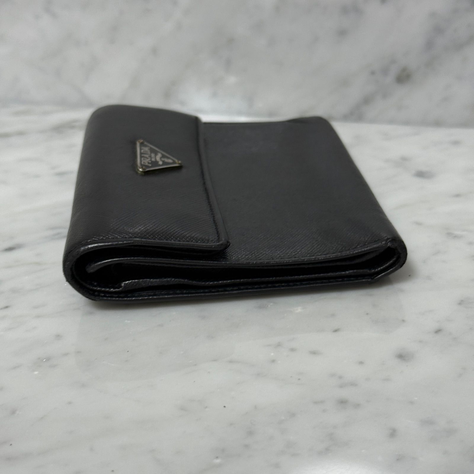 PRADA プラダ 三つ折財布 ブラック 黒 サフィアーノ 本革 レザー トライアングル