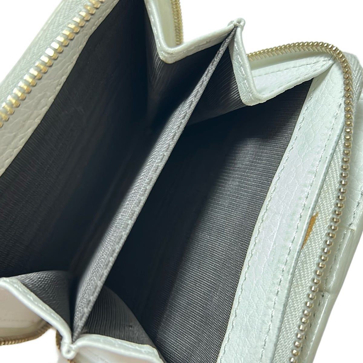 CELINE セリーヌ 2つ折り財布 - 白 ラウンドファスナー 型押し加工 レザー