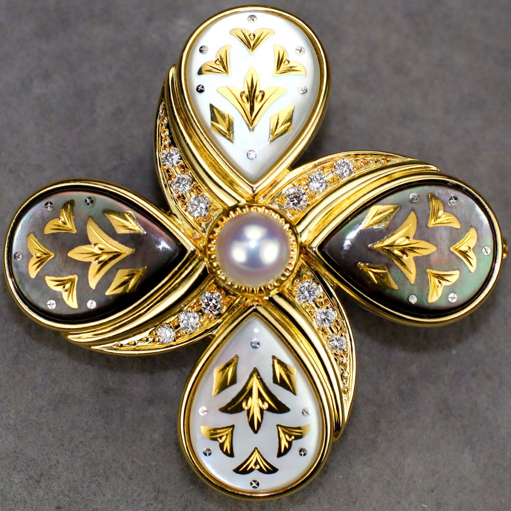 ミキモト K 18 YG シェル アコヤ真珠 パール ダイヤモンド ブローチ兼ペンダントトップ ピクウェ