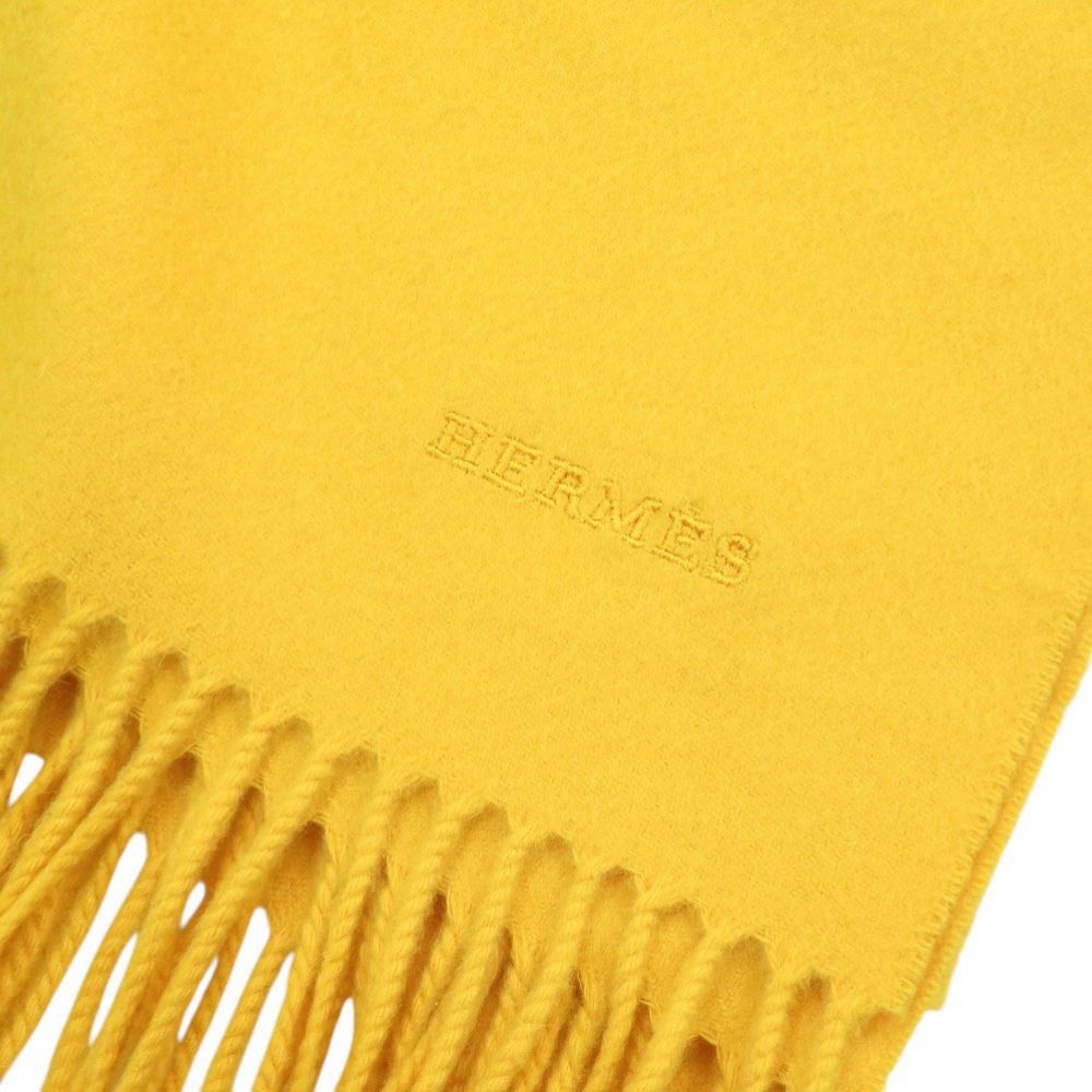 エルメス ロゴ刺繡 カシミヤ イエロー マフラー 黄 0452 HERMES