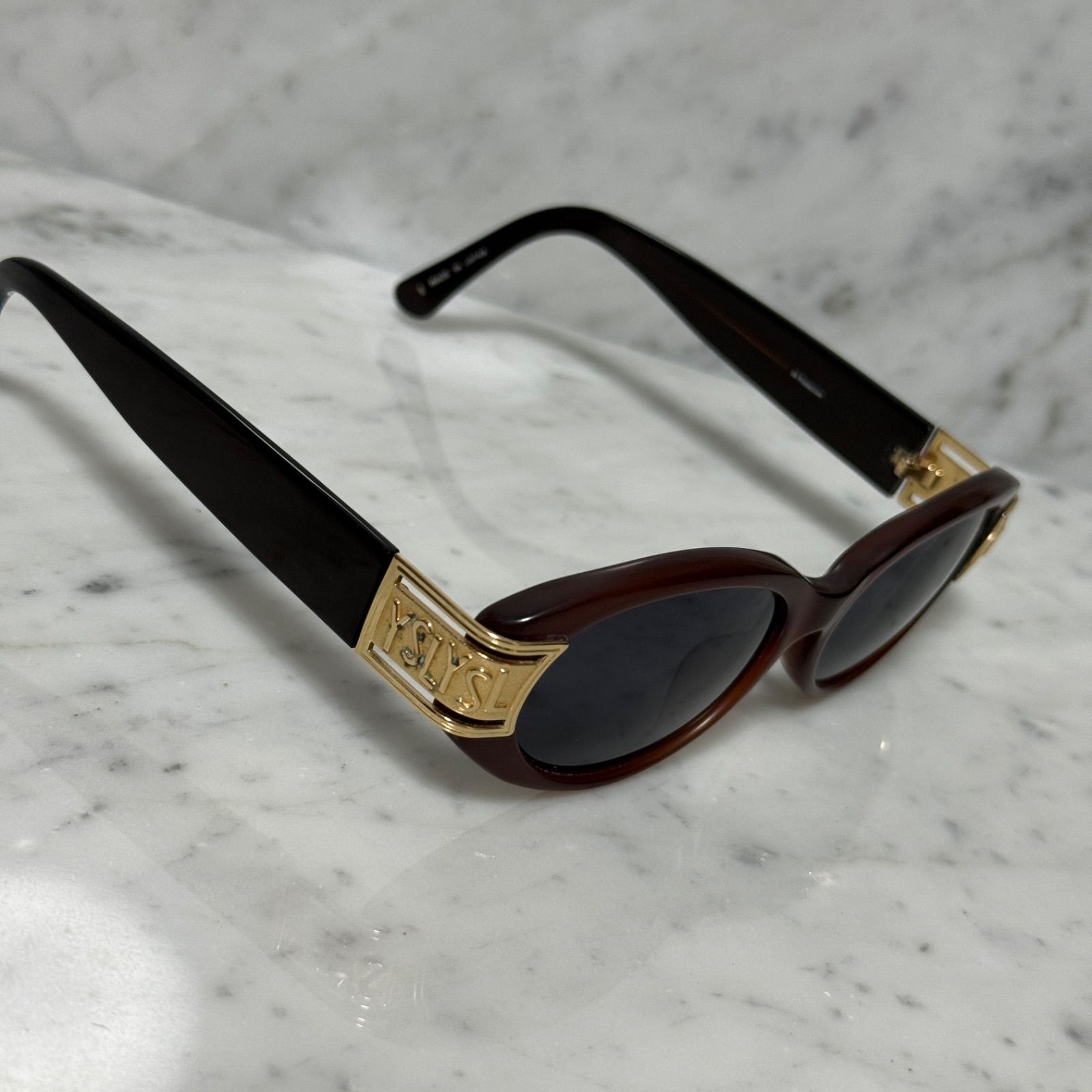 90 s Yves Saint Laurent イヴサンローラン サングラス ゴールド 金 ロゴ YSL ブラウン メガネ