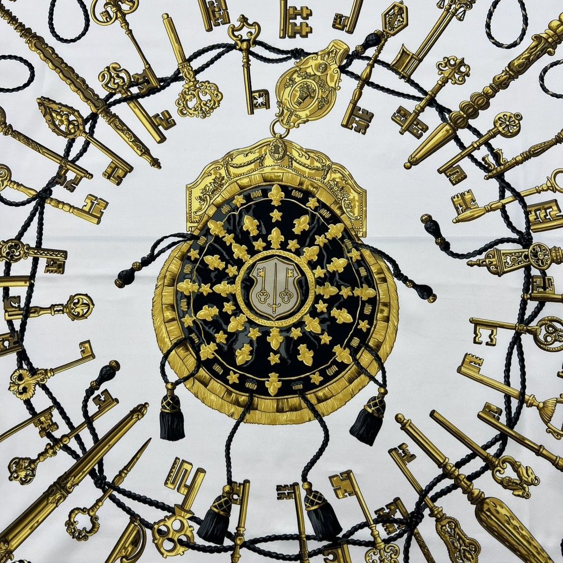 HERMES エルメス カレ90 Les Cles 鍵柄 黒×白