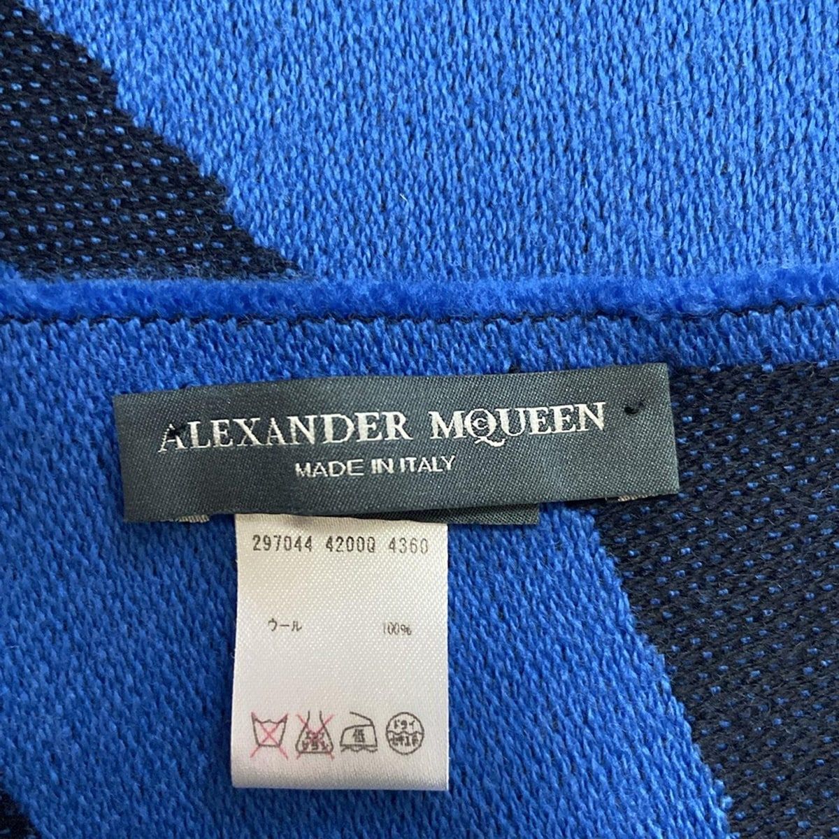 ALEXANDER McQUEEN アレキサンダーマックイーン マフラー - ブルー×黒 ウール