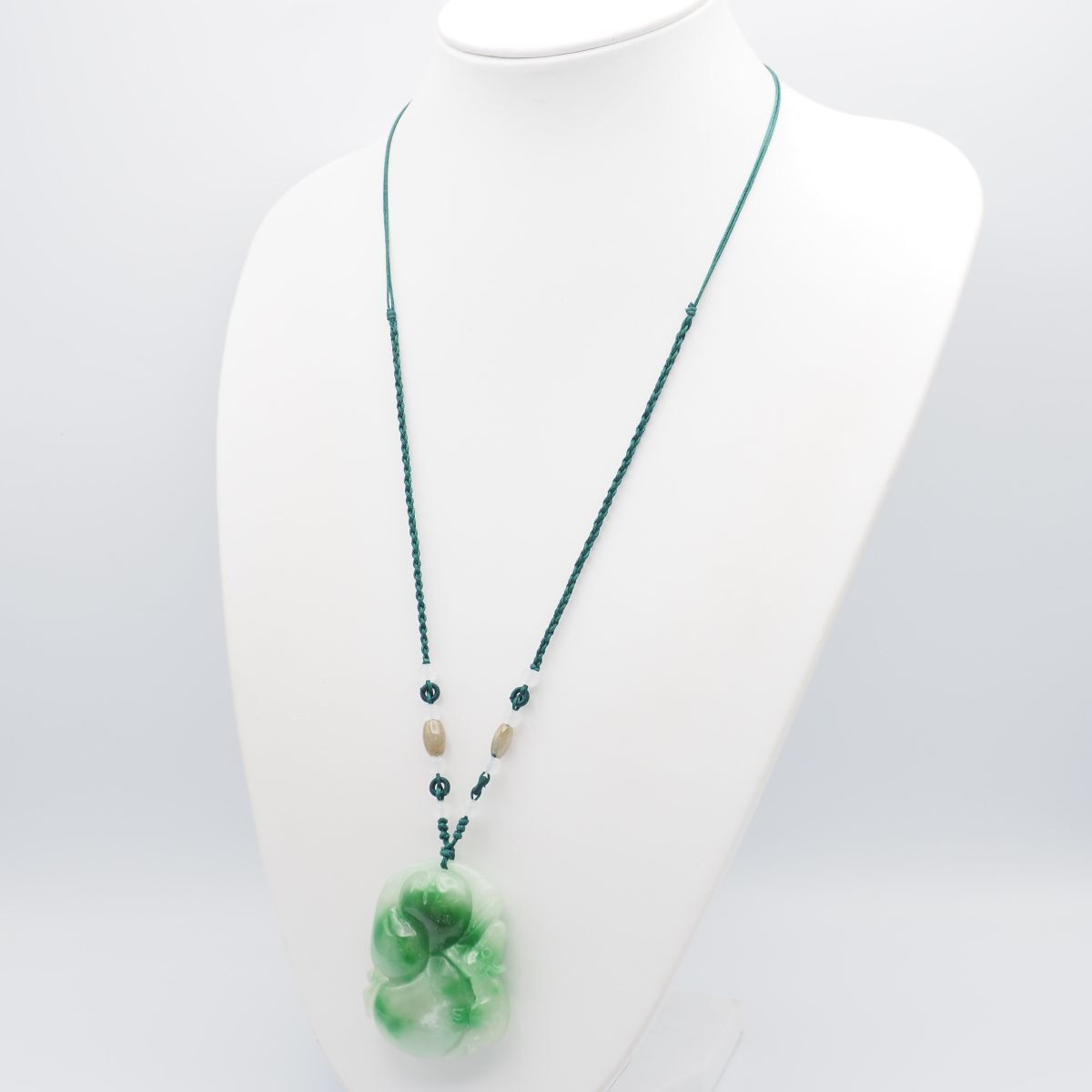 H 262 翡翠 ヒスイ ネックレス 大ぶり 彫刻 紐 デザイン アンティーク