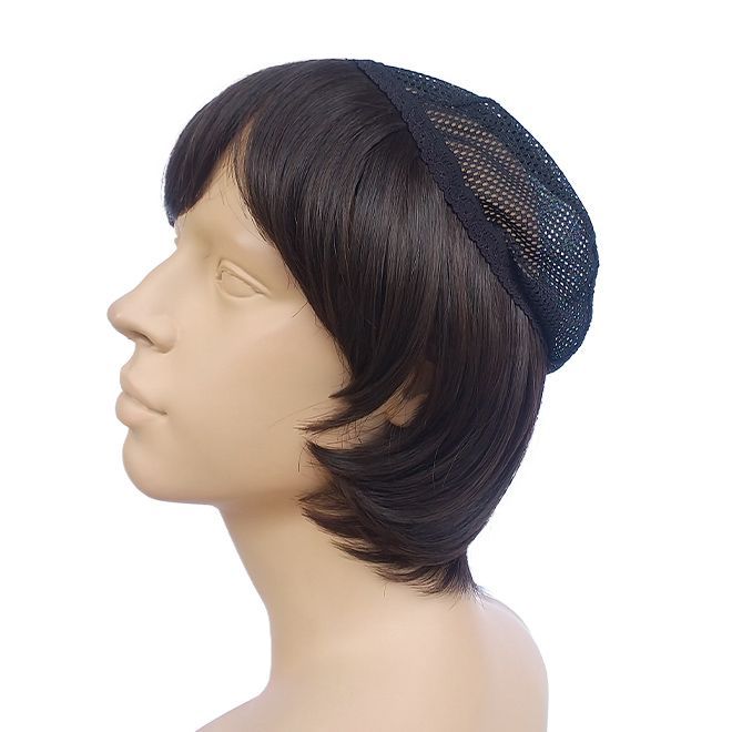 抗菌・消臭効果が期待できるティオ・ティオ加工を施したメッシュキャップに自然な毛の流れを再現しながら縫い付けた髪の毛付きの内キャップです。