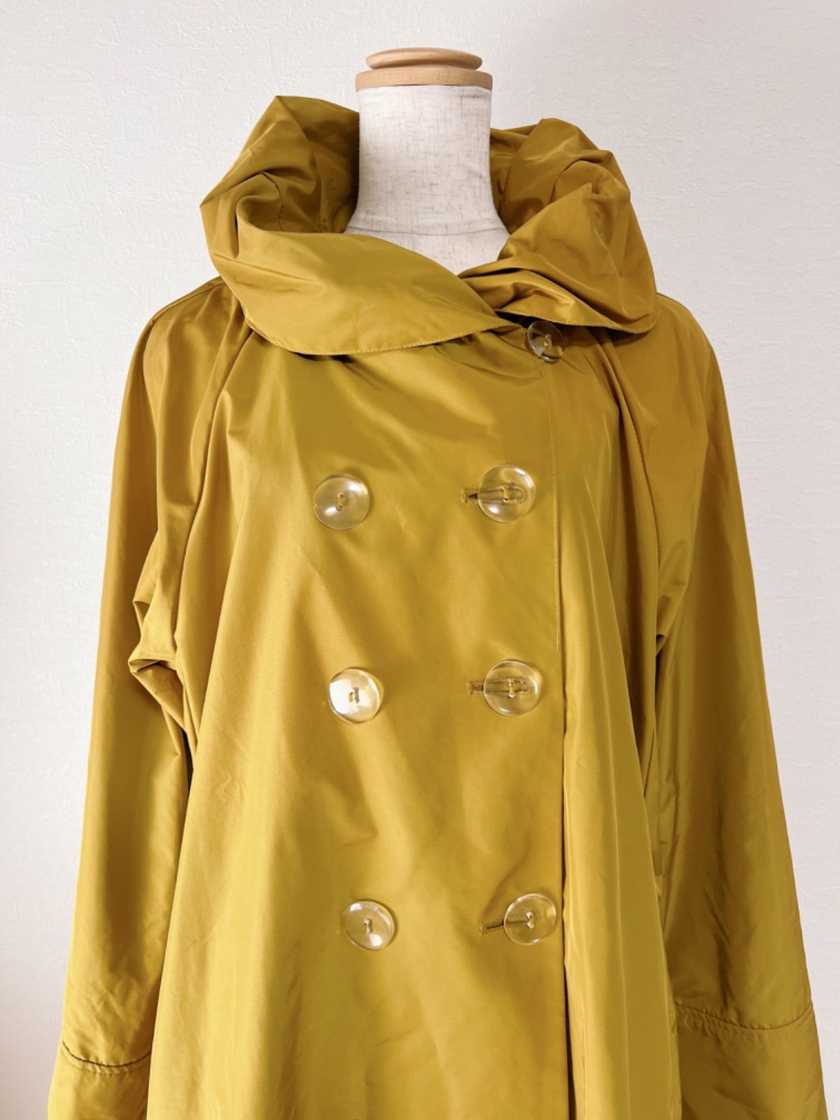 Aラインのオシャレなシルエットに、首まですっぽり覆える襟付きのレインコートです。