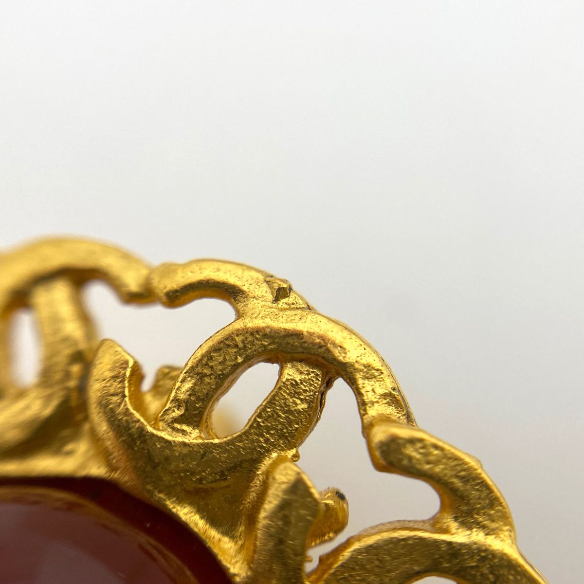 シャネル CHANEL ココマーク ストーン イヤリング CC ラウンド GP ゴールド レッド レディース