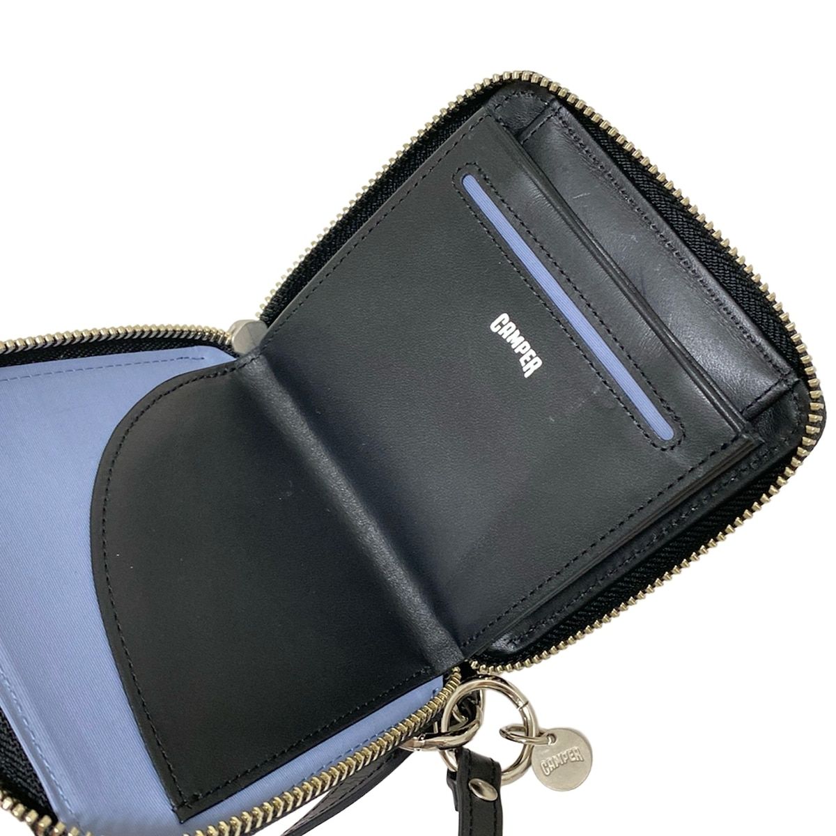 CAMPER カンペール コインケース - 黒×ライトパープル ラウンドファスナー キーリング付き レザー