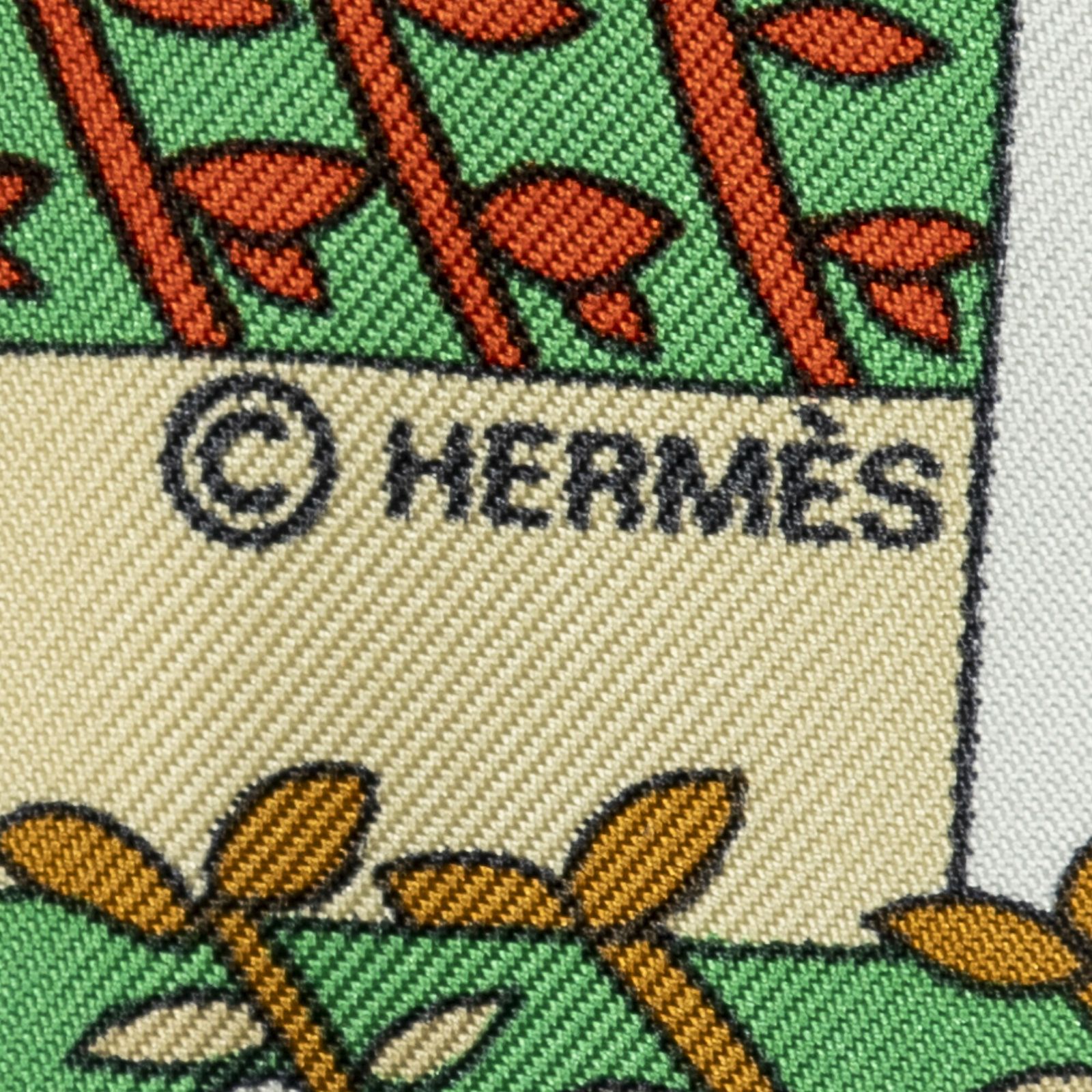 HERMES エルメススカーフ黄色 緑 茶色 ツイルシルクA