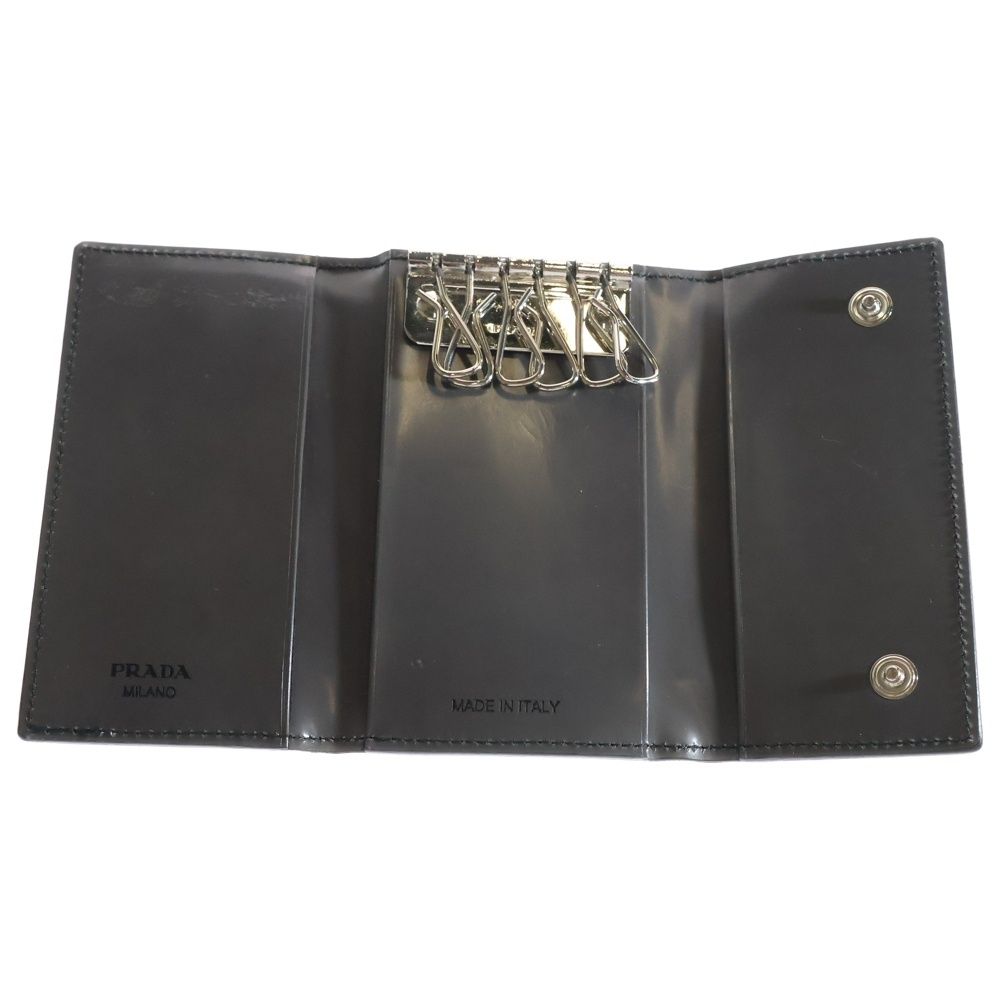 PRADA プラダ 6連キーケース キーホルダー キーリング バッグチャーム ブラック シルバー金具 パテント 2 M 0025