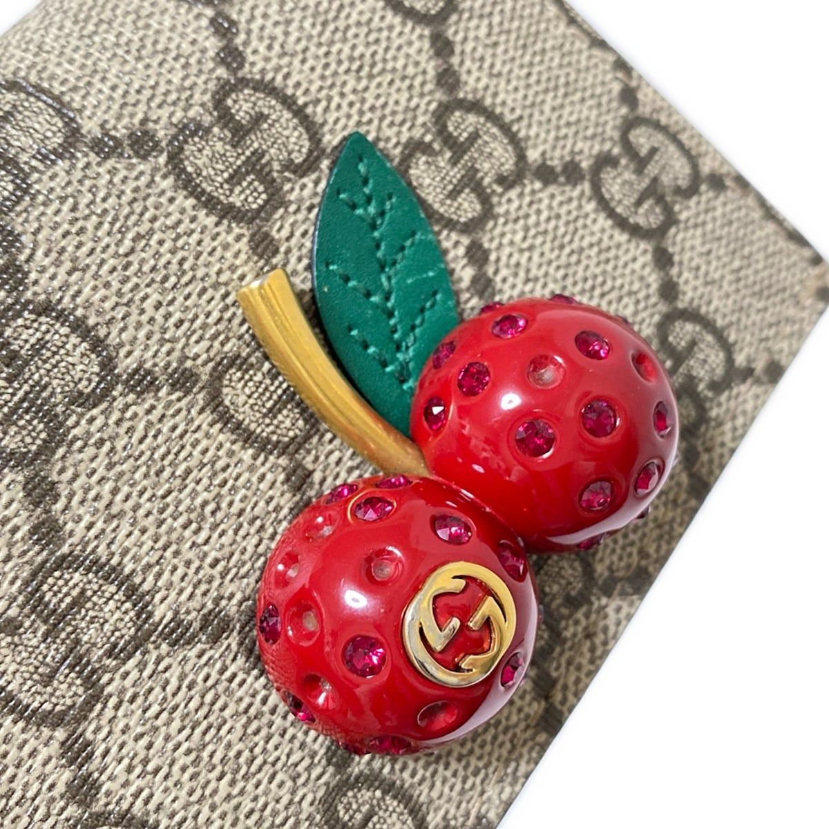 GUCCI グッチ 2つ折り財布 チェリー GGプラス GGスプリーム 476050 ベージュ×ダークブラウン×マルチ レザー