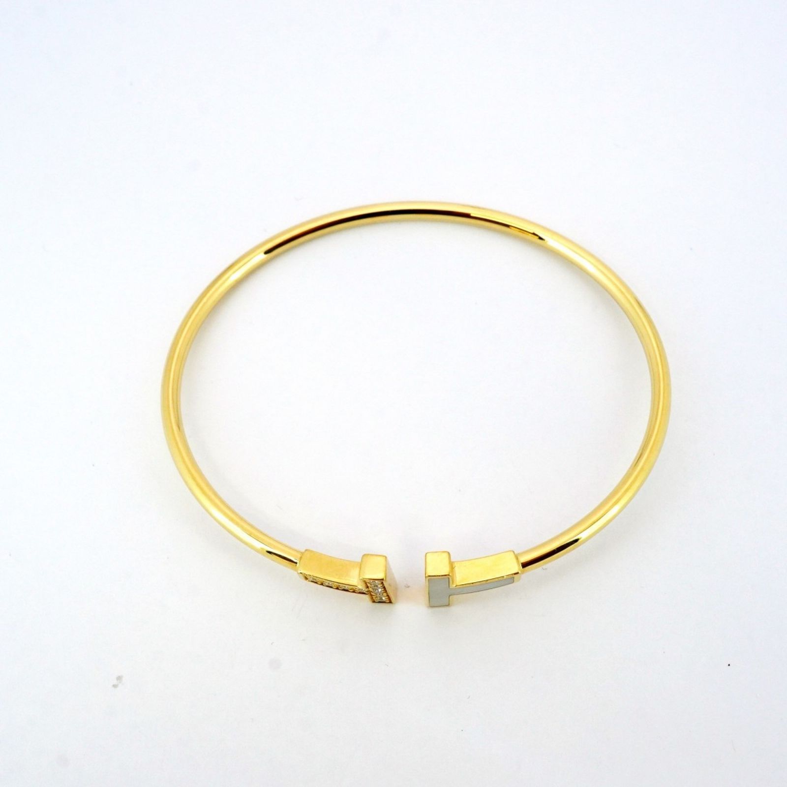 ティファニー Tiffany バングル Tワイヤー 9 PD 18 KYG イエローゴールド ダイヤモンド マザーオブパール 0.11 ctレディース