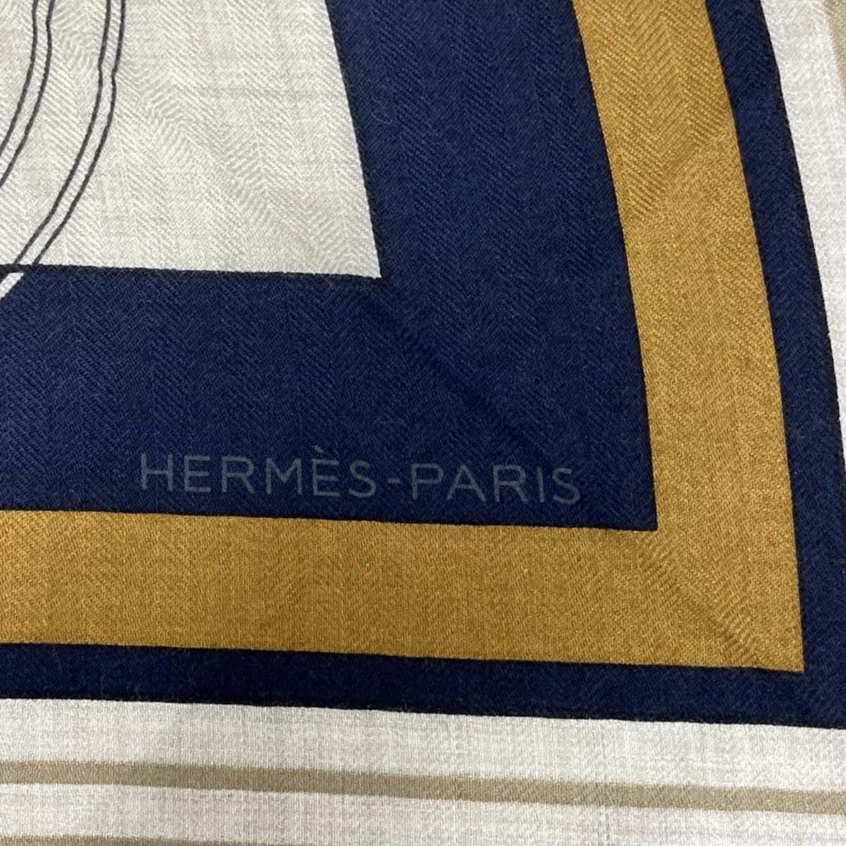 エルメス ストール ショール トライアングル ジェアン ベージュ×ダークネイビー×ブラウン POINTE TRAIANGLE CACH カシミヤ シルク