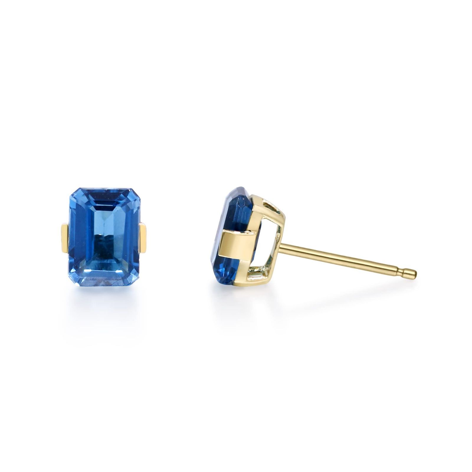 数量 Grace - 10 kイエローゴールド のロンドンブルートパーズイヤリングの女性のための 倫理的 で 有機的に調達した エメラルド 形状のロンドンブルートパーズの手作りのジュエリー Gin