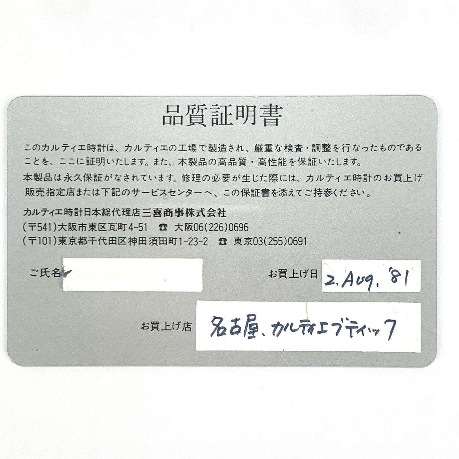 ギャランティカード 修理証明書