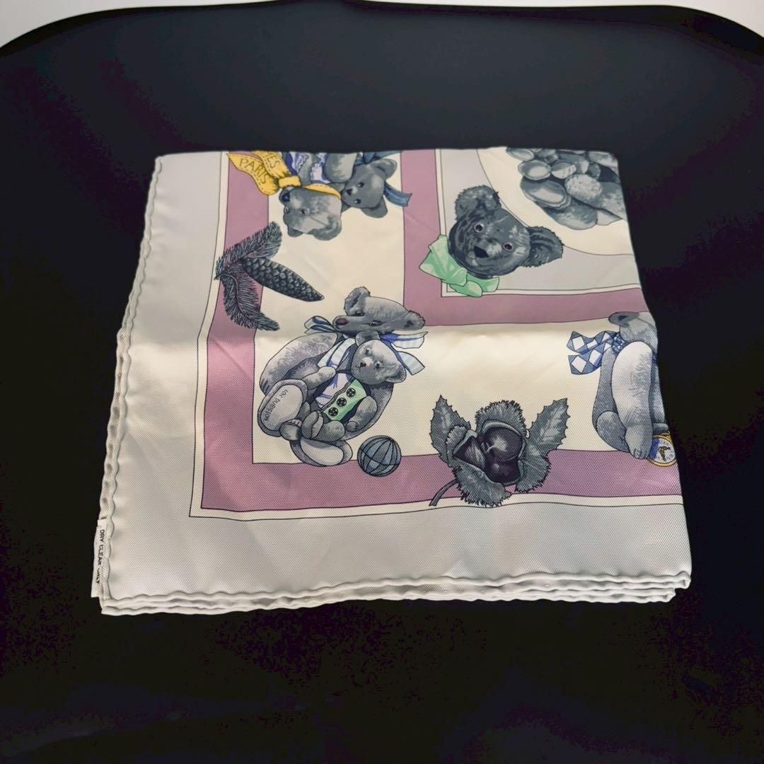 HERMES エルメス 心の友 テディベア スカーフ カレ 45 シルク クマ 熊 動物柄