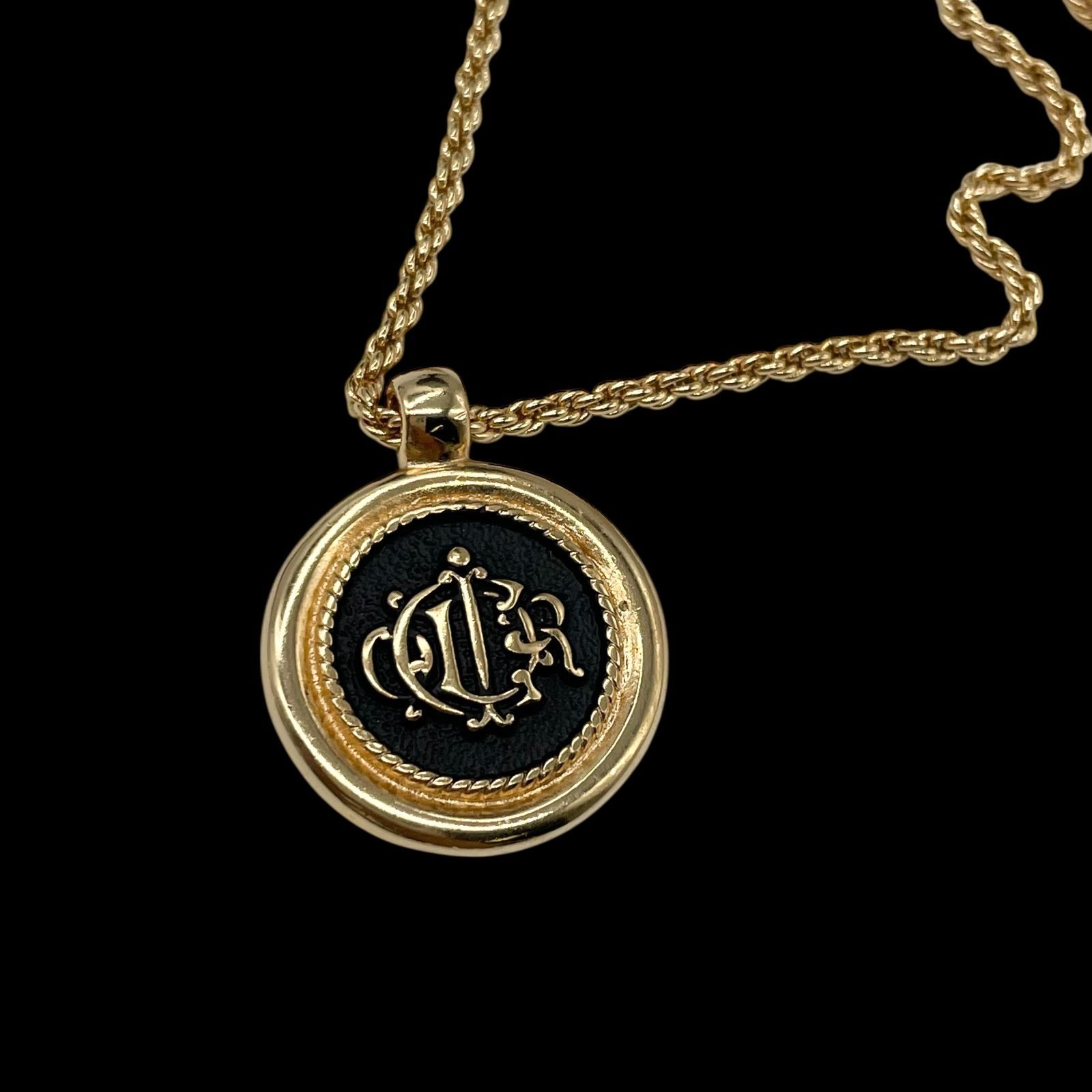 Christian Dior クリスチャン ディオール エンブレムロゴ サークル ネックレス ペンダント 首輪 ゴールド ジュエリー ヴィンテージ